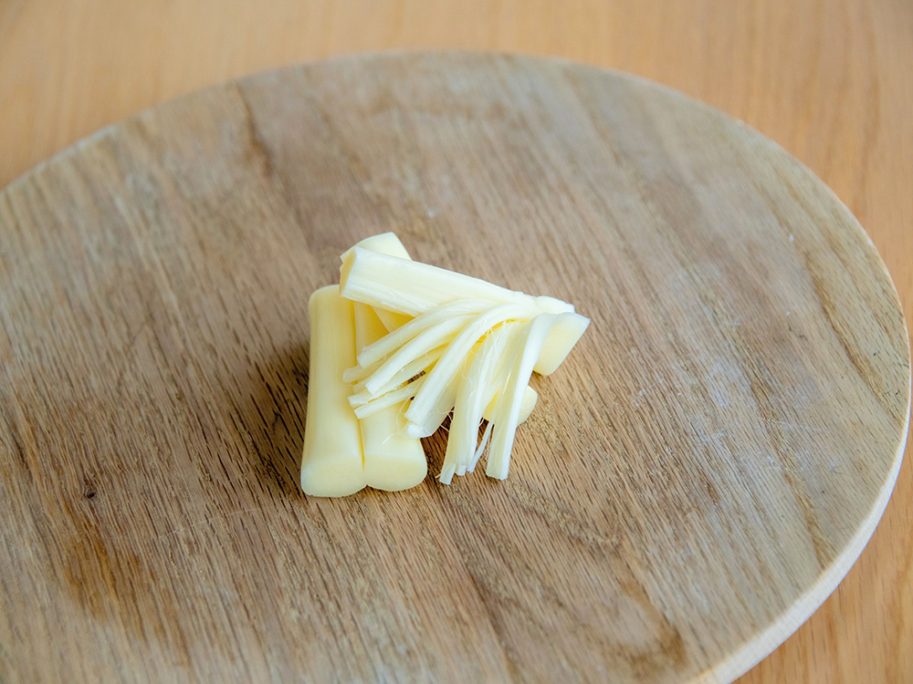 手ですーっとさける、モッツァレラチーズのさけるタイプ。繊維感のある独特の食感と、じんわりと広がるミルクの旨み。お酒のおつまみにはもちろん、お子さまのおやつとしても大人気。